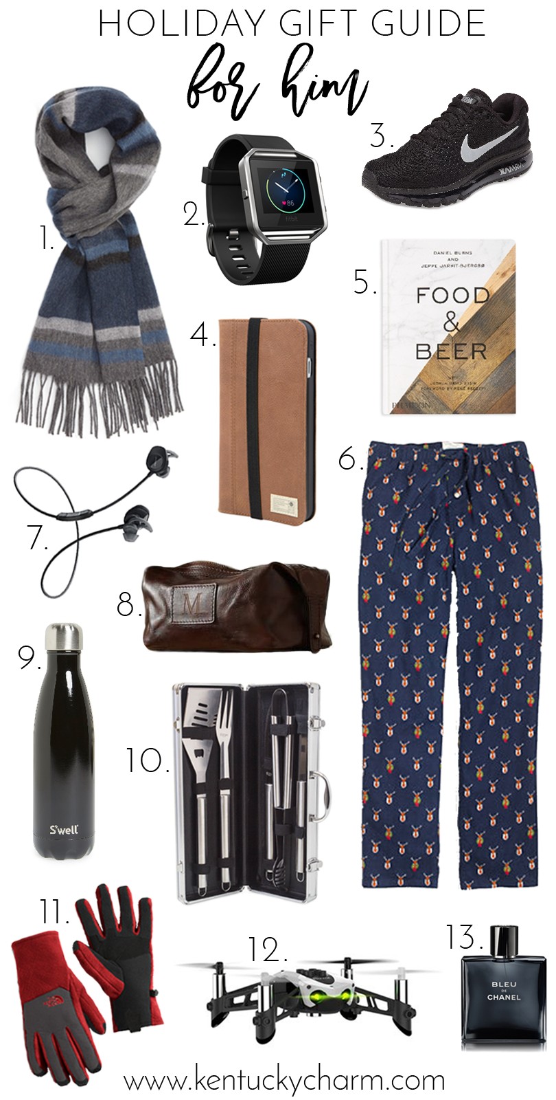 Happy Saturday! Is it just me or did this week feel like the longest week ever?! I've got another gift guide for y'all today -- for him edition. The hubby actually helped me put this one together, so this gift guide is chalked full of gifts for just about any guy. Dylan made it obviously clear that he would love me forever if I bought him number 12 {a mini drone}.